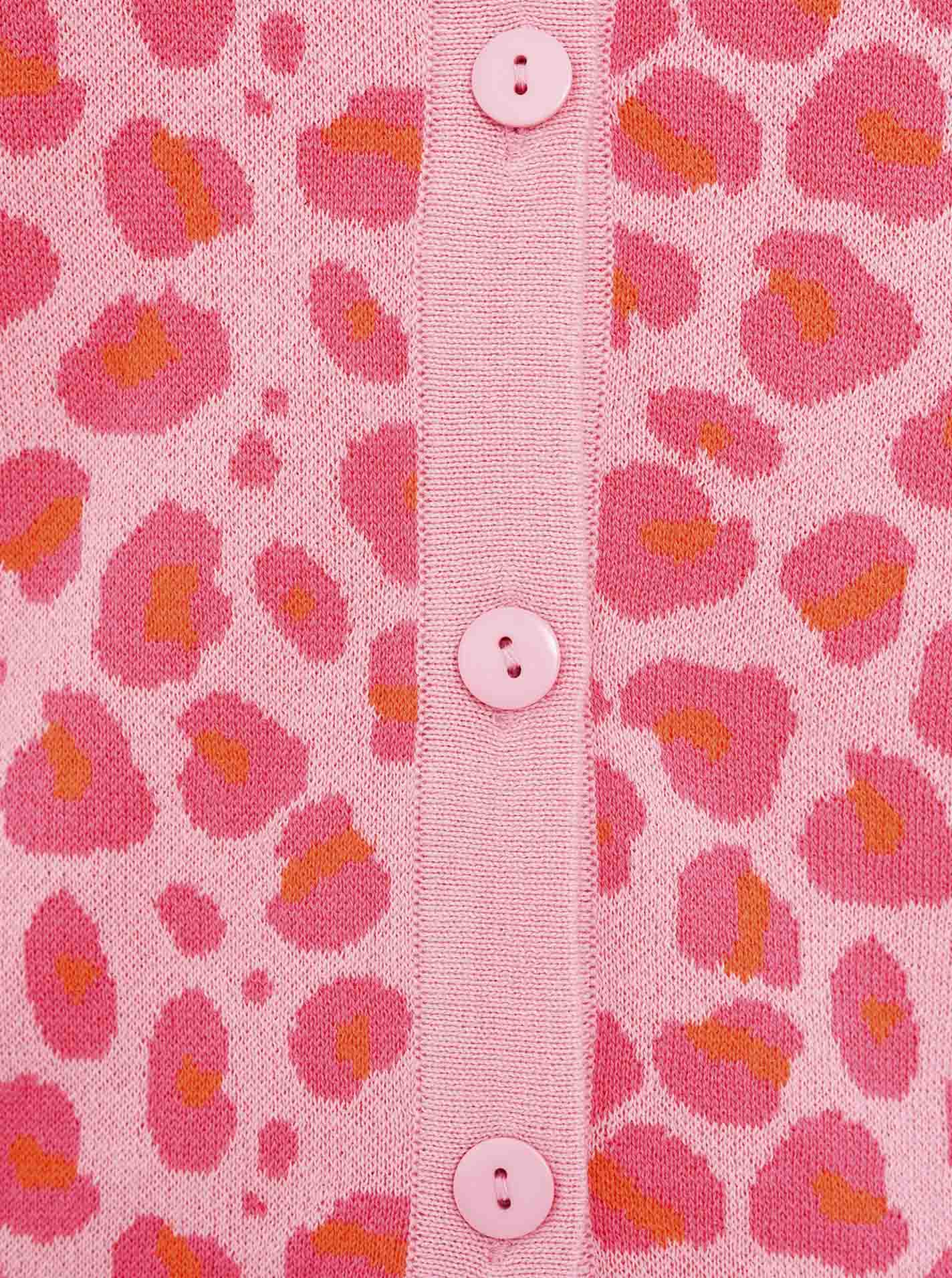 Der Cardigan "gestrickter-Leo" überzeugt mit einem modernen Leopardenmuster und zeitlosem Strickdesign. Das weiche Strickmaterial sorgt für angenehmen Tragekomfort und hält an kühleren Tagen warm.