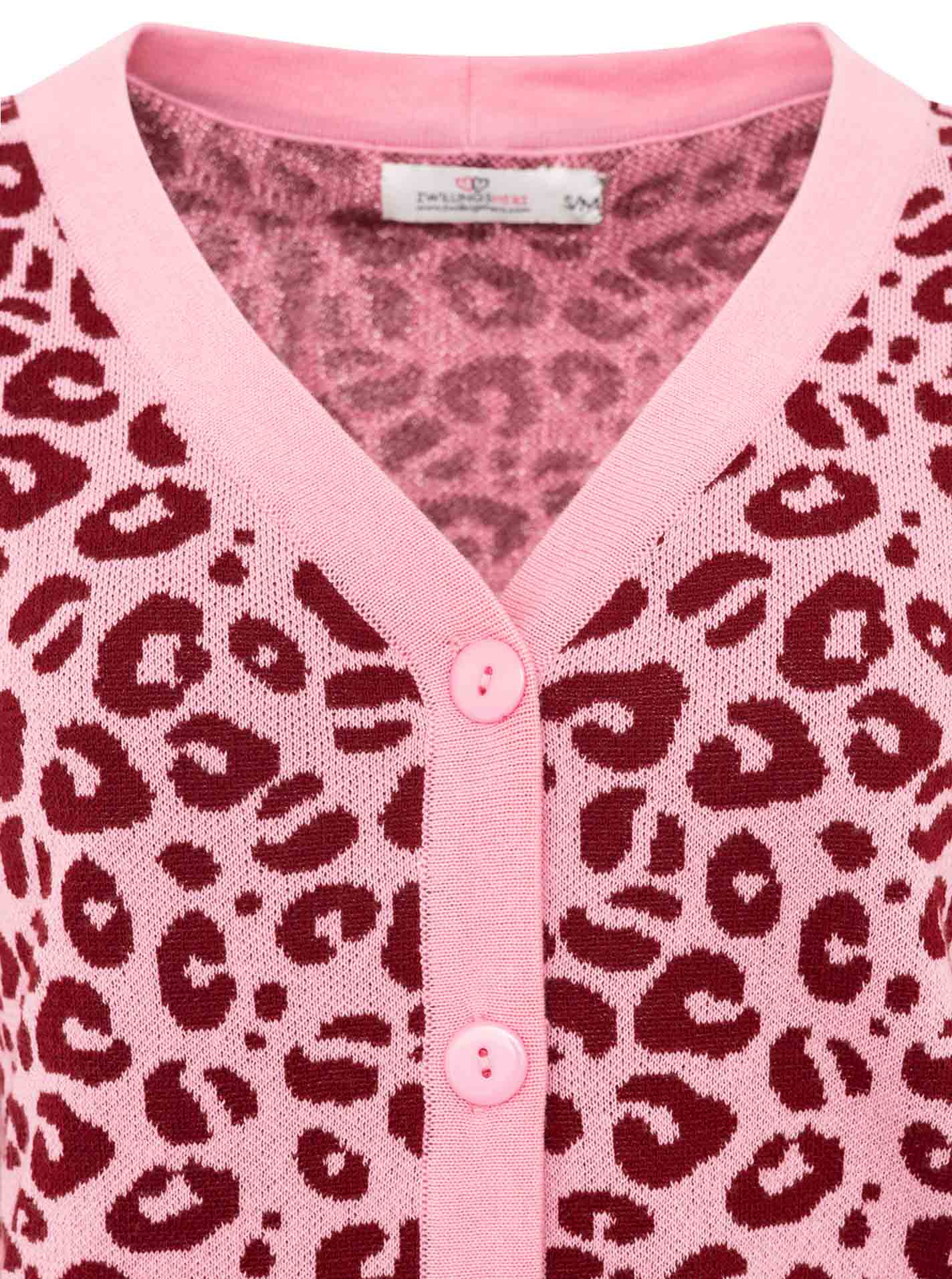 Der Cardigan "gestrickter-Leo" überzeugt mit einem modernen Leopardenmuster und zeitlosem Strickdesign. Das weiche Strickmaterial sorgt für angenehmen Tragekomfort und hält an kühleren Tagen warm.