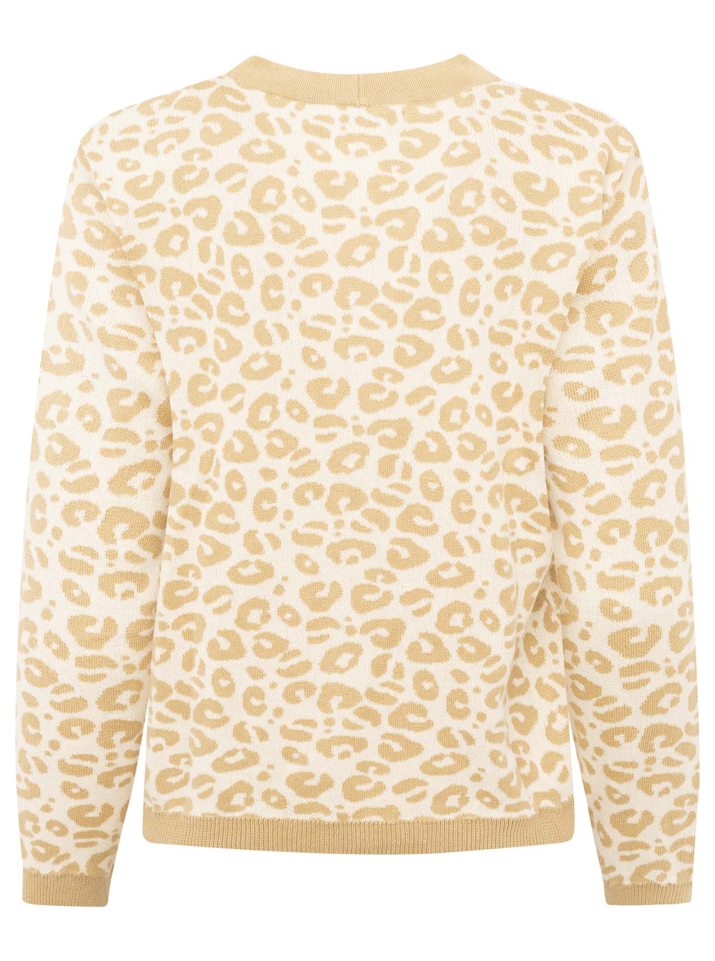Der Cardigan "gestrickter-Leo" überzeugt mit einem modernen Leopardenmuster und zeitlosem Strickdesign. Das weiche Strickmaterial sorgt für angenehmen Tragekomfort und hält an kühleren Tagen warm.