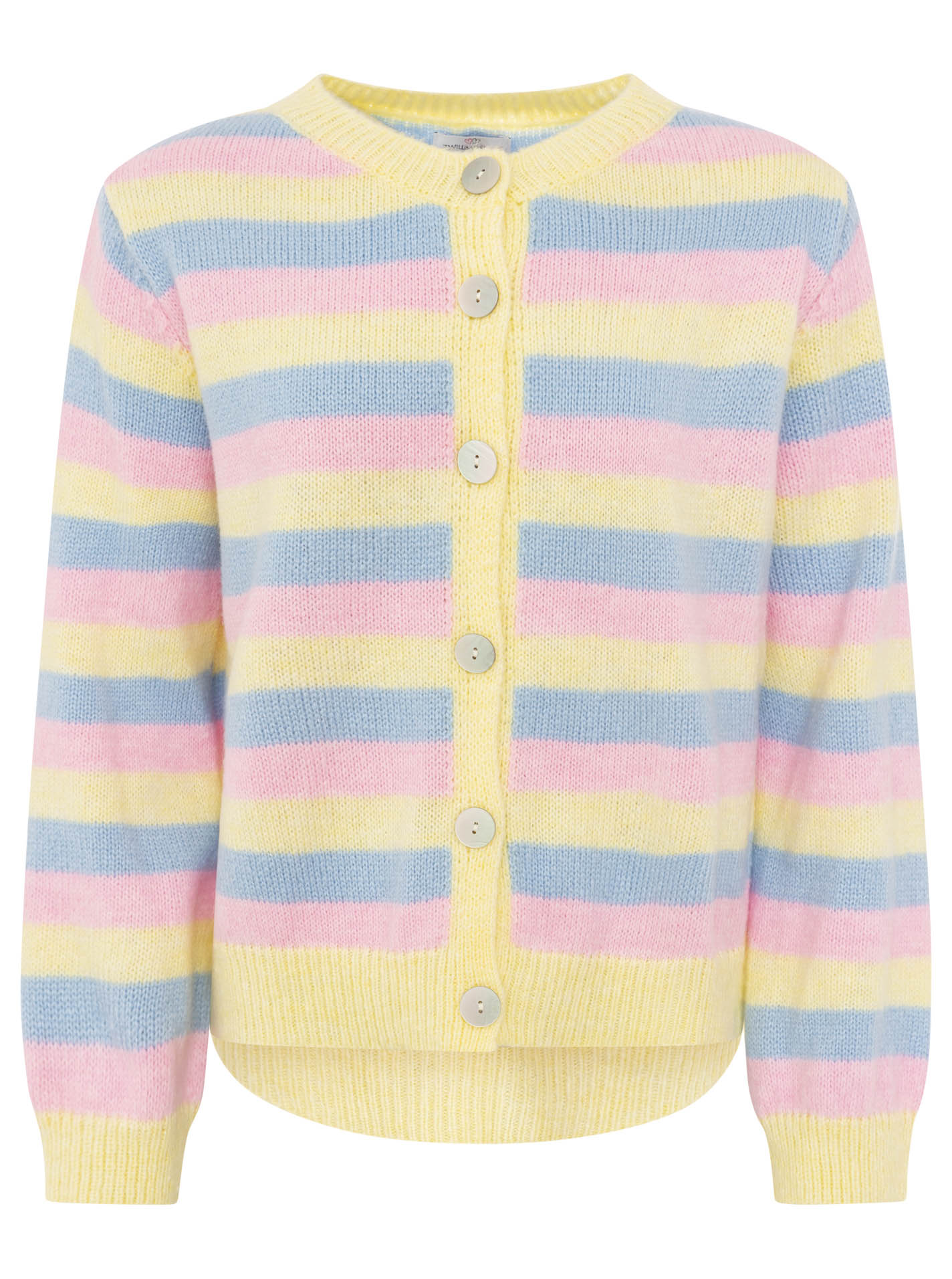 Der Cardigan "Bunte Streifen" aus hochwertigem Wollmix sorgt für angenehme Wärme und ein weiches Tragegefühl. Das farbenfrohe Streifen-Design setzt stilvolle Akzente und macht ihn zum Hingucker in jedem Outfit. Ideal für gemütliche Looks mit einem modischen Twist.