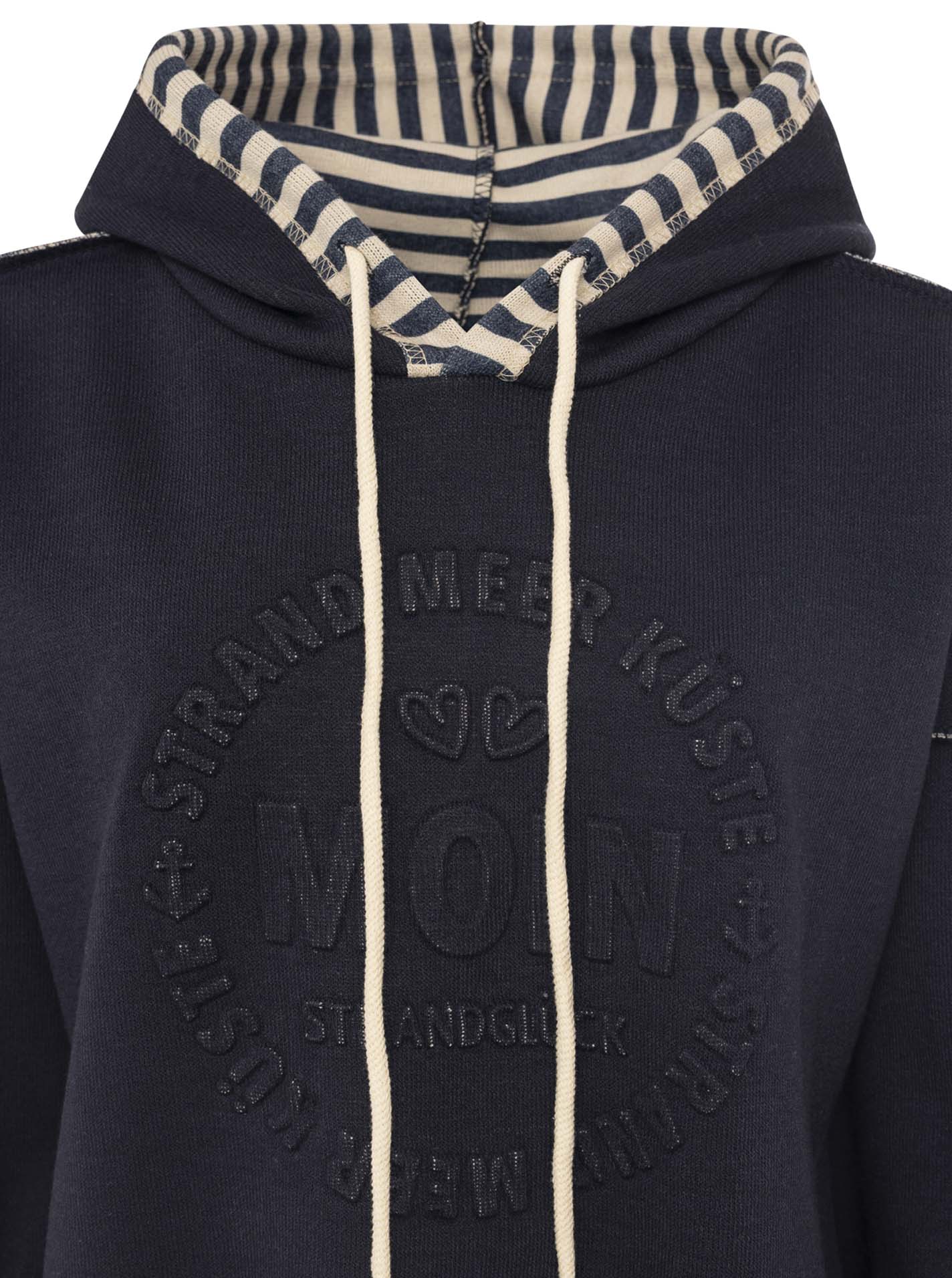 UnsDer Doubleface Hoodie "Moin & Streifen" ist ein bequemer Kapuzenpullover für Alltag und Freizeit. Das weiche Material sorgt für ein angenehmes Tragegefühl und hält angenehm warm. Das Streifenmuster verleiht dem Design einen maritimen, modernen Look - Designed by Zwillingsherz