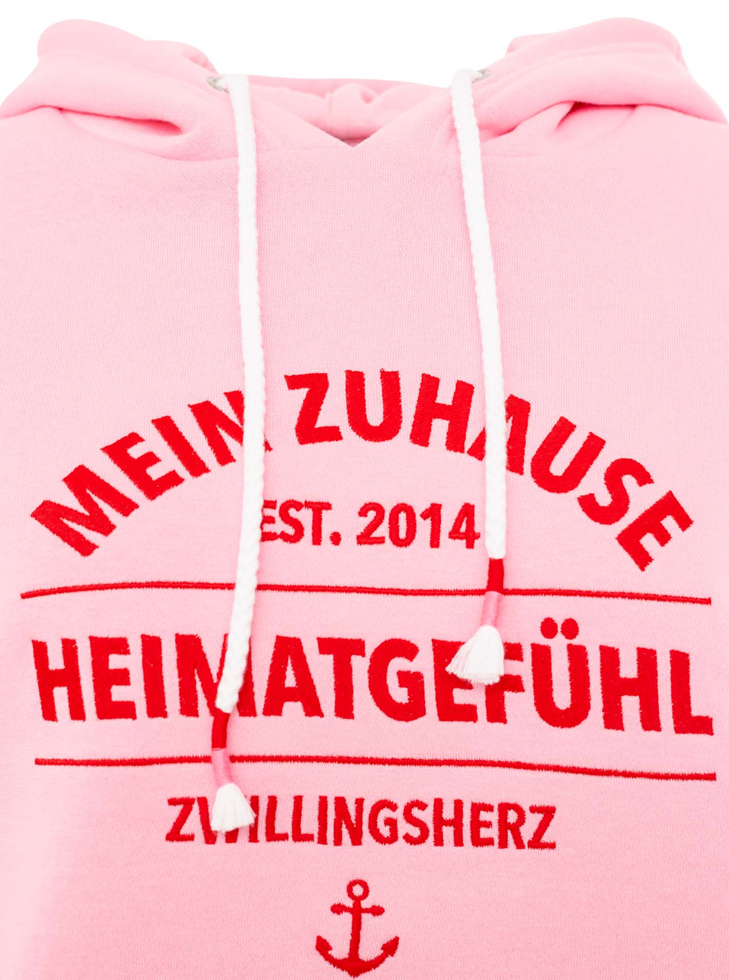 Der Hoodie "Heimatgefühl" verfügt über eine Kapuze mit Kordelzug, Rippbündchen und eine praktische Fronttasche - Designed by Zwillingsherz