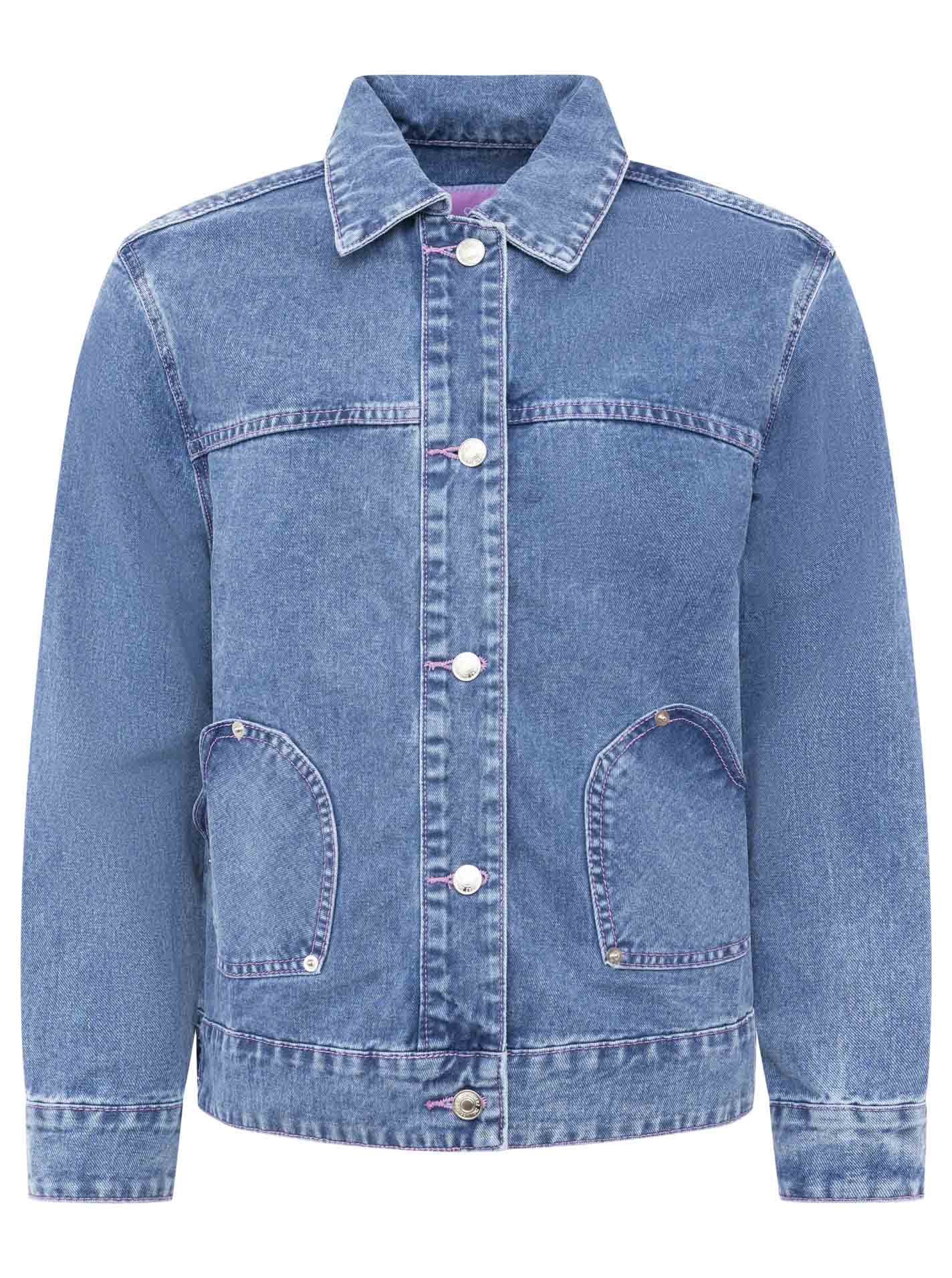 Gerade geschnittene Jeansjacke mit klassischem Kragen, durchgehender Knopfleiste und aufgesetzten Taschen mit Knopfverschluss. Bietet angenehmen Tragekomfort und lässt sich vielseitig kombinieren. Ideal für Übergangszeit, und Herbst.