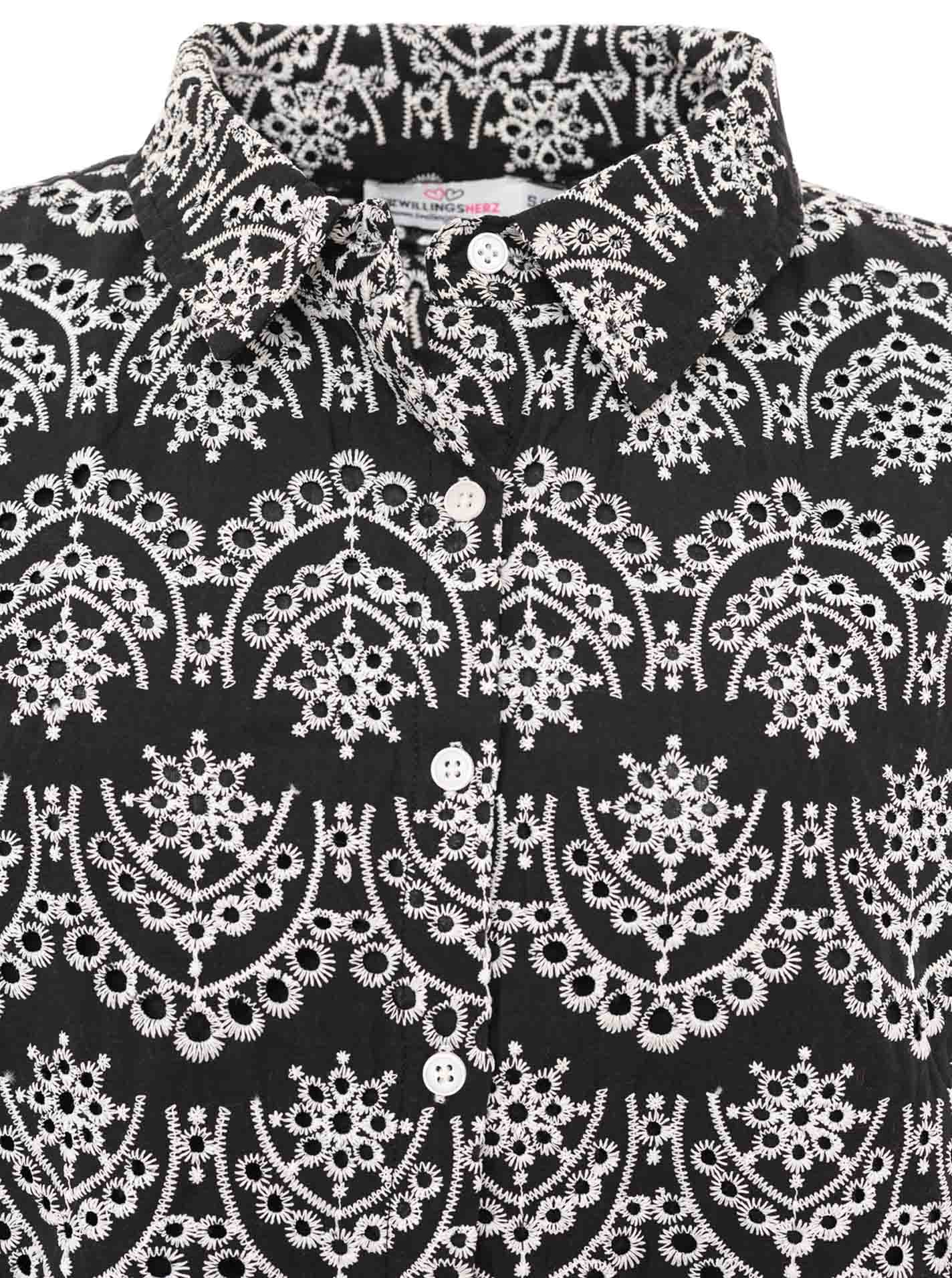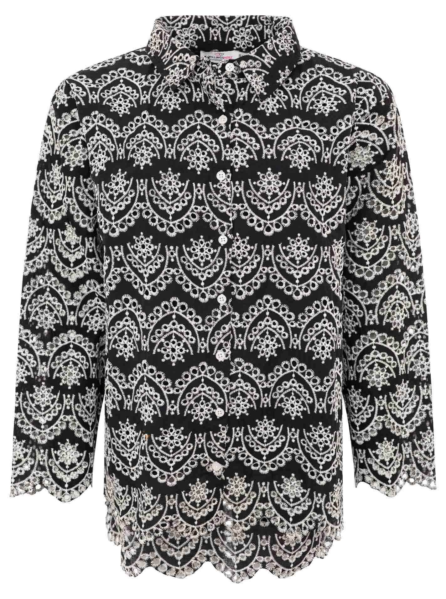 Langarm Bluse mit Lochstickerei