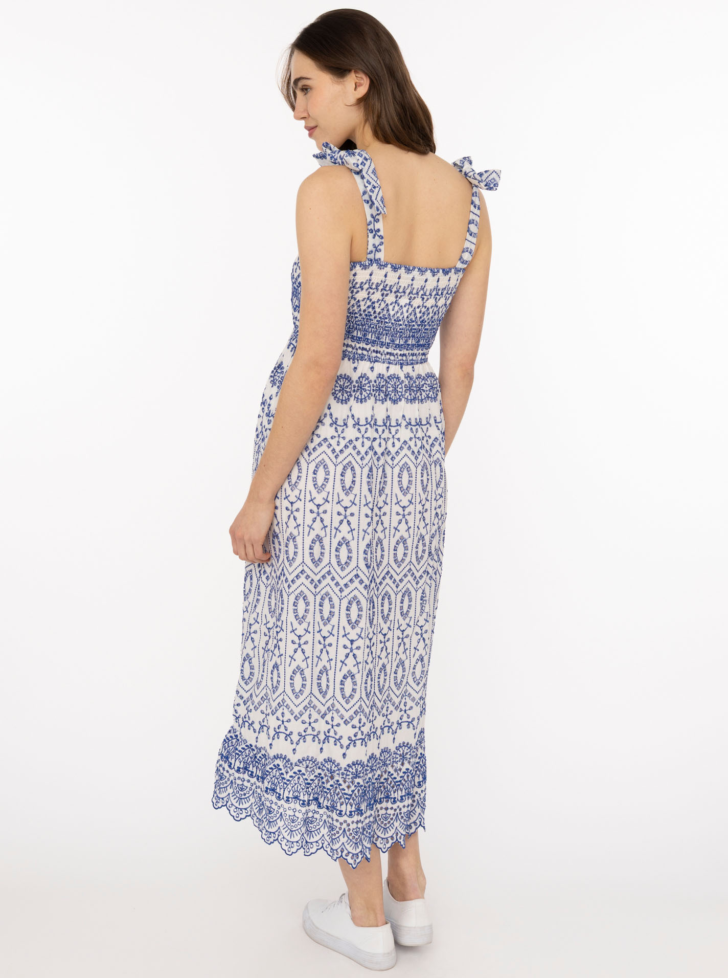 Maxikleid mit feiner Lochstickerei. Die leichte, fließende Qualität sorgt für angenehmen Tragekomfort und eine elegante, luftige Optik. Ideal für feminine Sommerlooks und vielseitige Stylingmöglichkeiten.