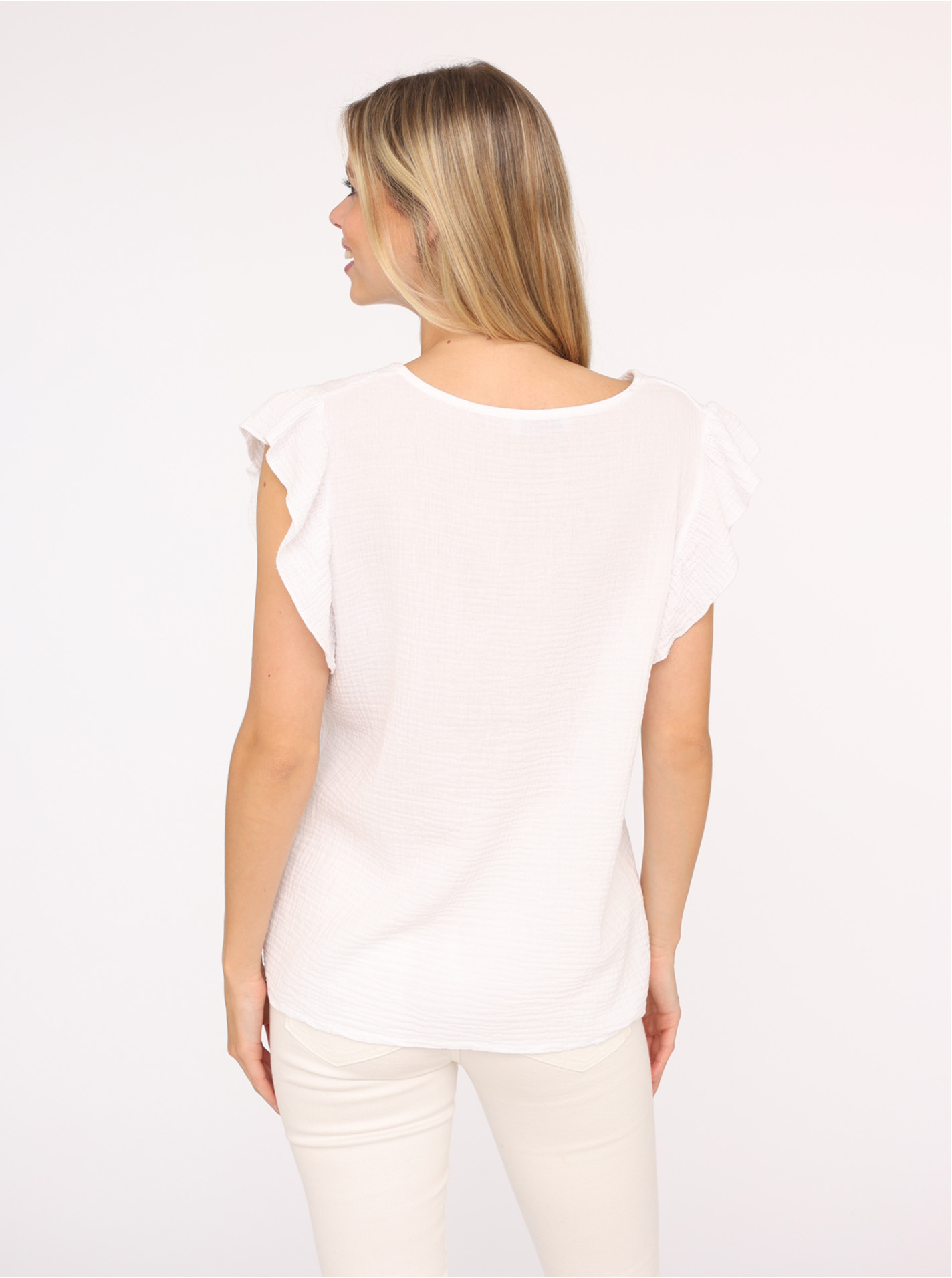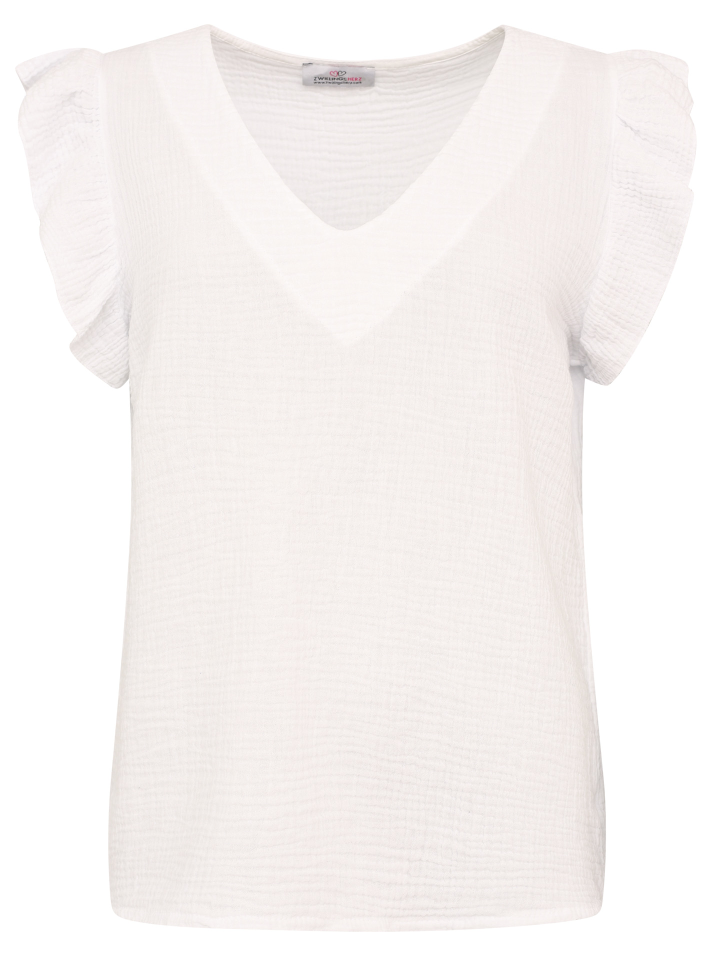 Unsere Musselin-Bluse "Rüschen" überzeugt mit leichter, luftiger Qualität und femininen Rüschendetails. Der entspannte Schnitt macht sie zum vielseitigen Begleiter für sommerliche Casual- und Büro-Looks.