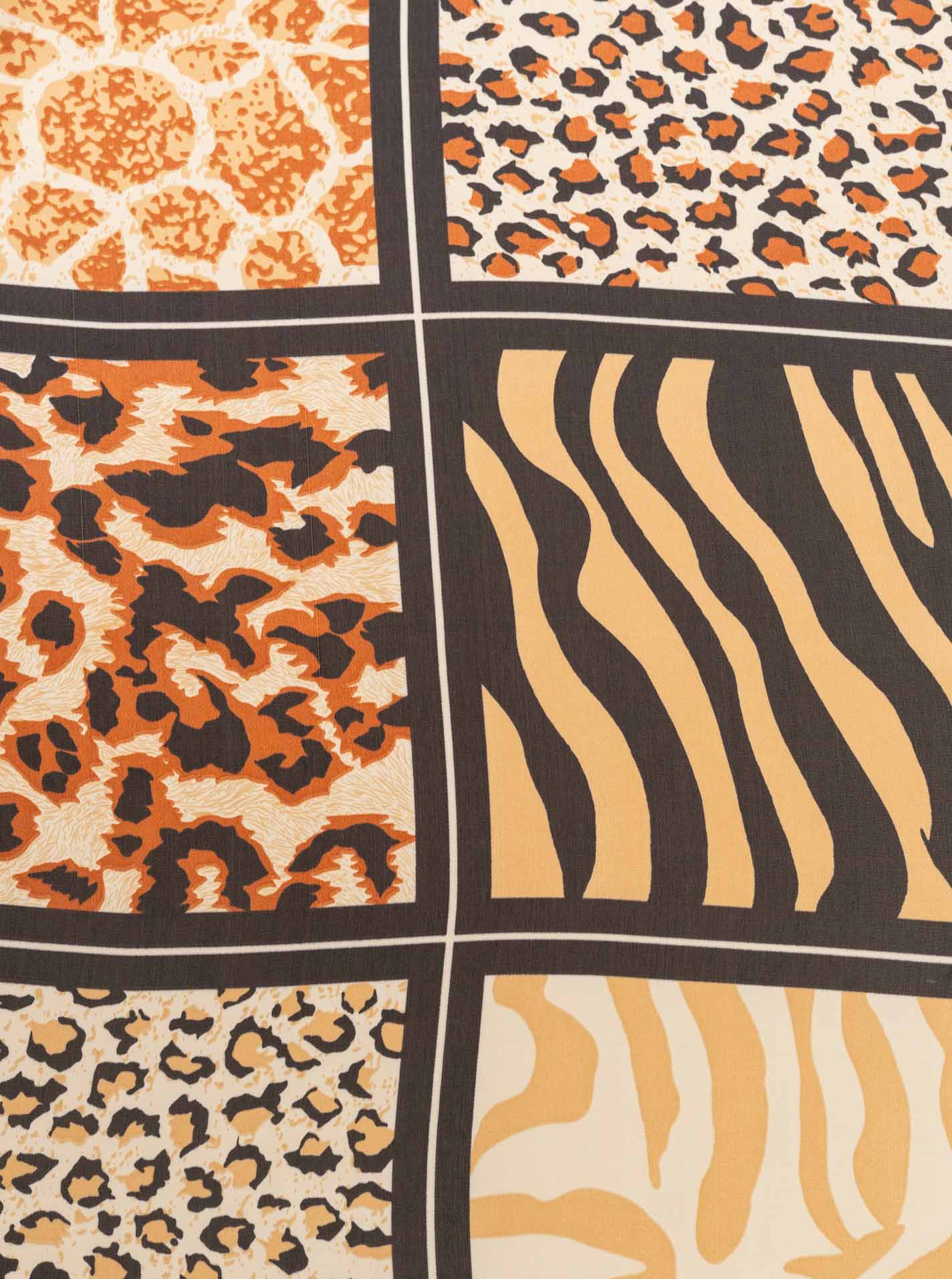 Das Nickituch "Multi Animal" überzeugt durch ein ausdrucksstarkes Animal-Print-Design, das verschiedene Tiermuster stilvoll kombiniert. Das leichte Material sorgt für ein angenehmes Tragegefühl und vielseitige Styling-Möglichkeiten im Alltag oder zu besonderen Anlässen.
