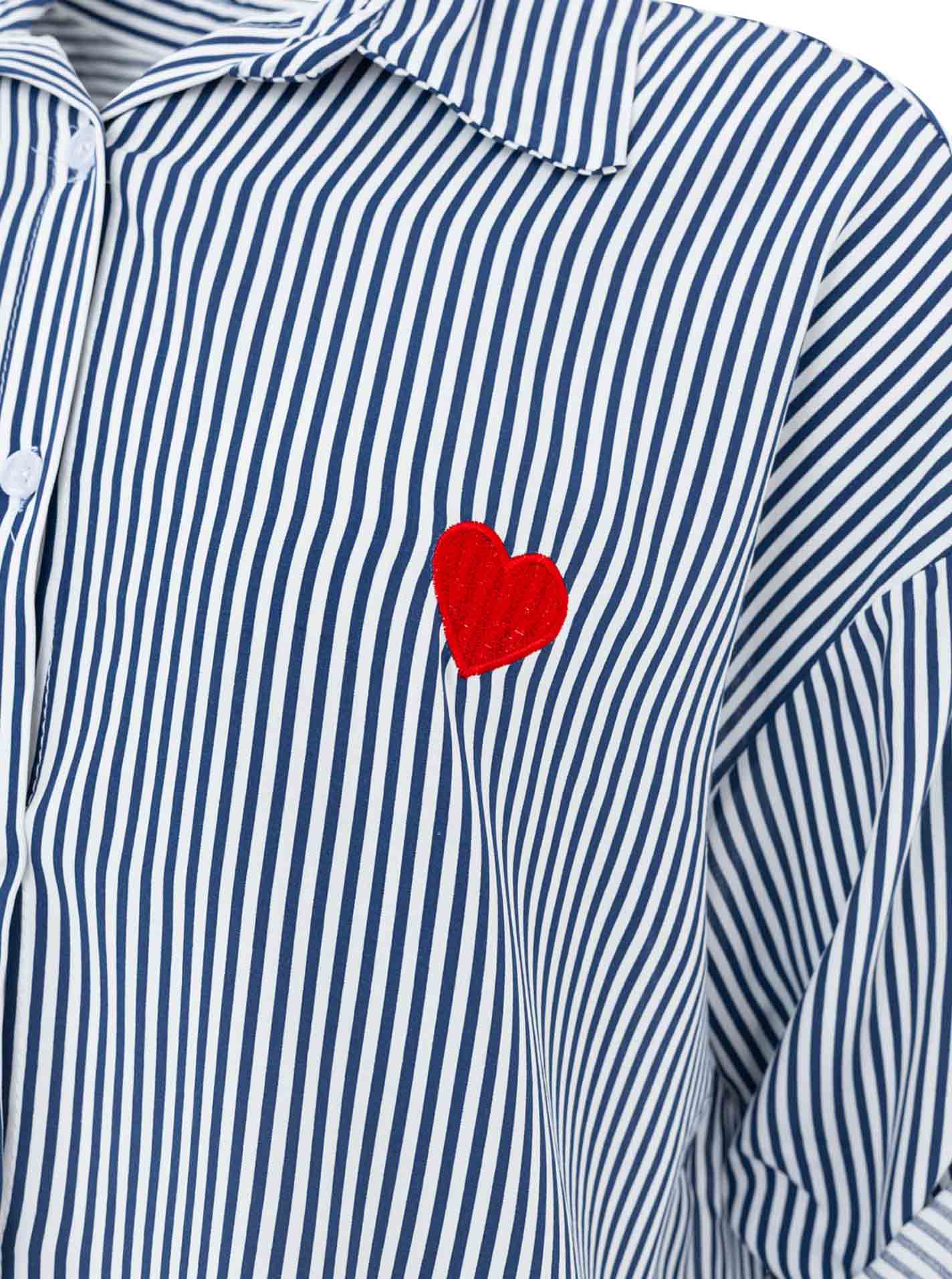 Die Oversize Bluse „Streifen & Herz“ besteht aus leichtem, angenehm zu tragendem Material und bietet eine lockere, bequeme Passform. Das Streifenmuster kombiniert mit dezenten Herz-Details sorgt für einen modernen, femininen Look- aus 100% Baumwolle