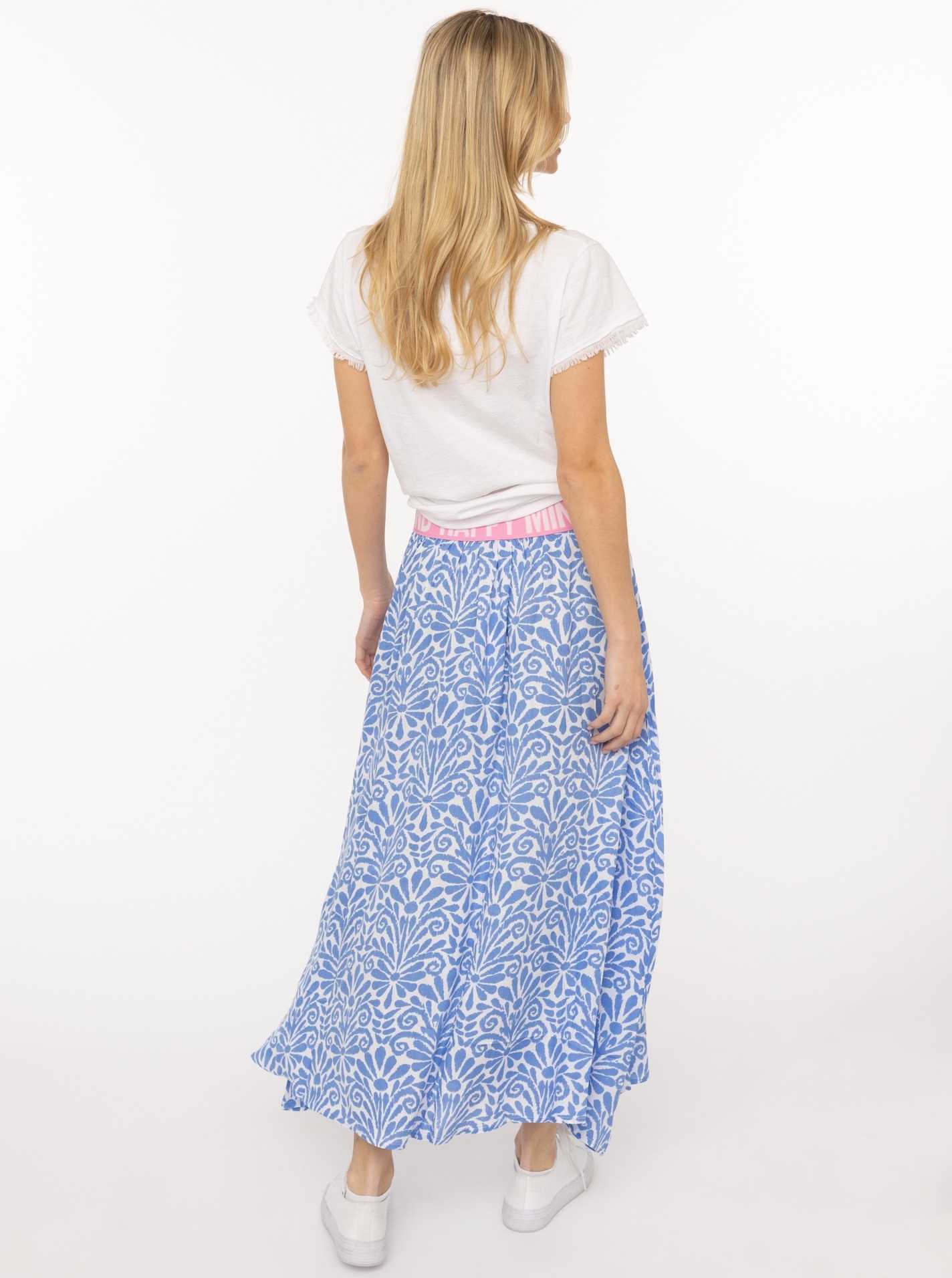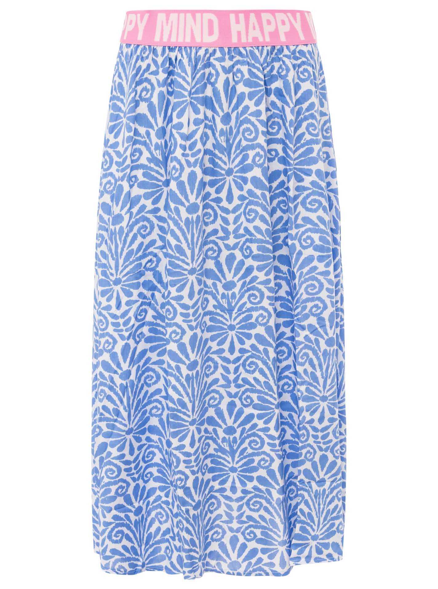 Der Rock "Geometric Flowers" überzeugt mit einem klaren, geometrischen Blumenmuster und einem leichten, angenehmen Material. Die gerade Schnittführung sorgt für einen strukturierten, sachlichen Look.