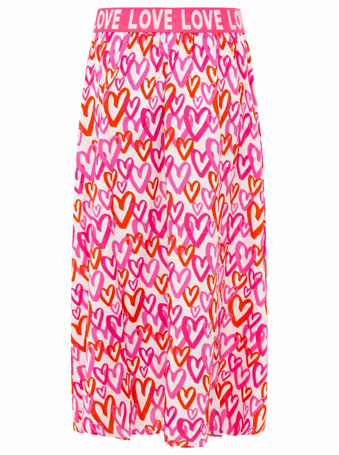 Der Rock "Love Hearts" überzeugt mit einem verspielten Herzmuster und einem leichten, angenehmen Material für hohen Tragekomfort. Die gerade Schnittführung sorgt für vielseitige Kombinationsmöglichkeiten im Alltag und zu besonderen Anlässen.