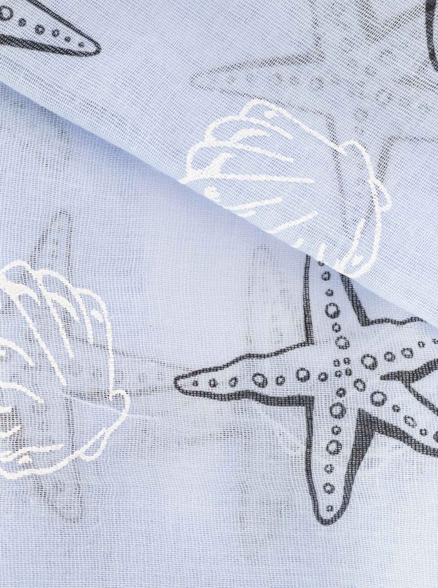 Schal "Seestern" mit feinem Motiv. Die weiche Qualität sorgt für angenehmen Tragekomfort, während das Design eine sommerliche Note verleiht. Vielseitig kombinierbar als Accessoire für Alltag und Freizeit.