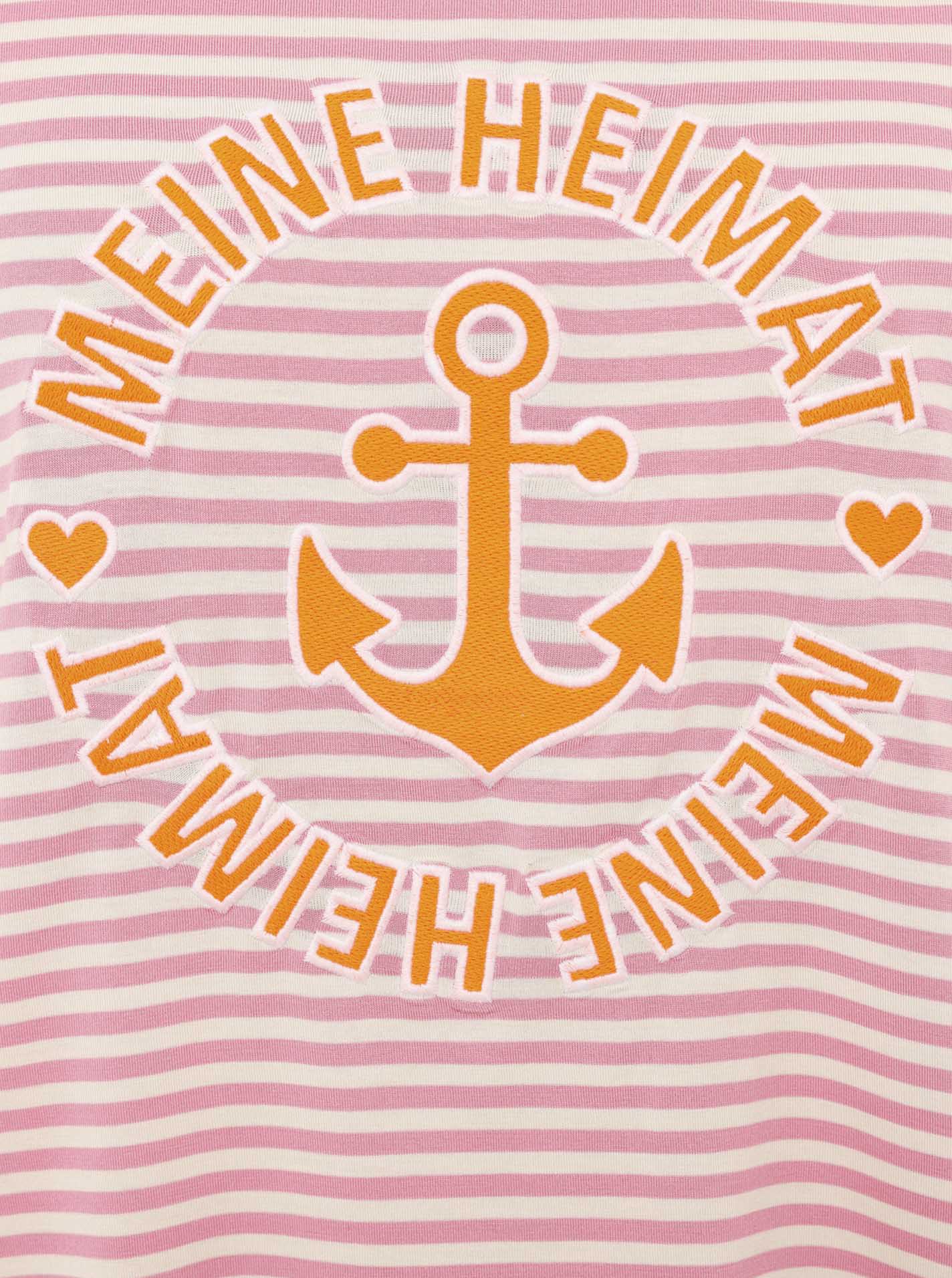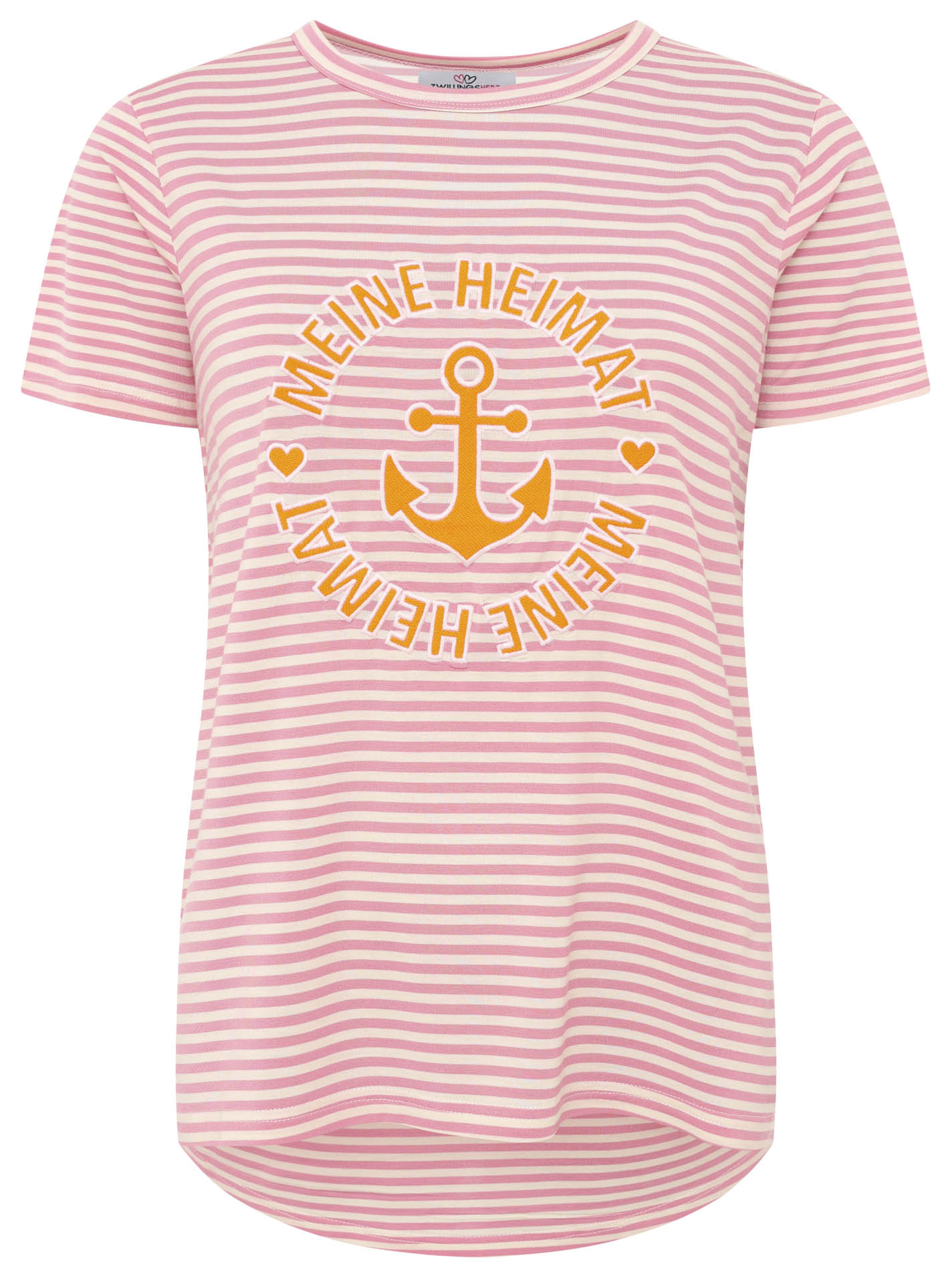 Das T-Shirt "Heimat Anker" überzeugt mit einem maritimen Streifenmuster und weichem, angenehm zu tragendem Material. Der gerade Schnitt sorgt für einen klaren, sachlichen Look.