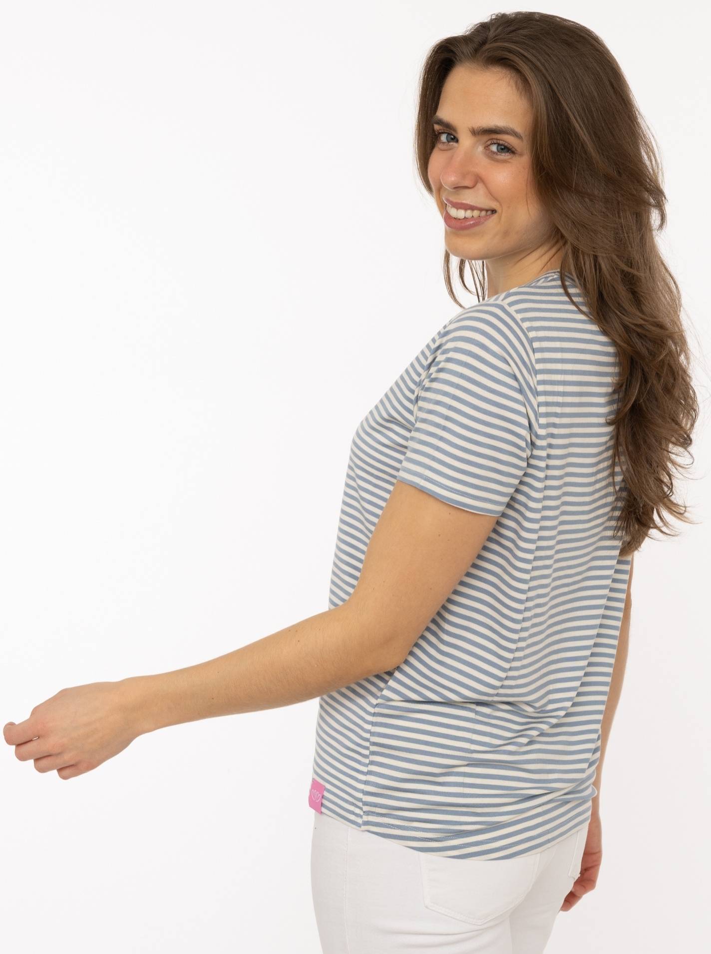T-Shirt Streifen "Positive Vibes" mit klassischem Schnitt. Streifenmuster und Motiv sorgen für einen lässigen Alltagslook.